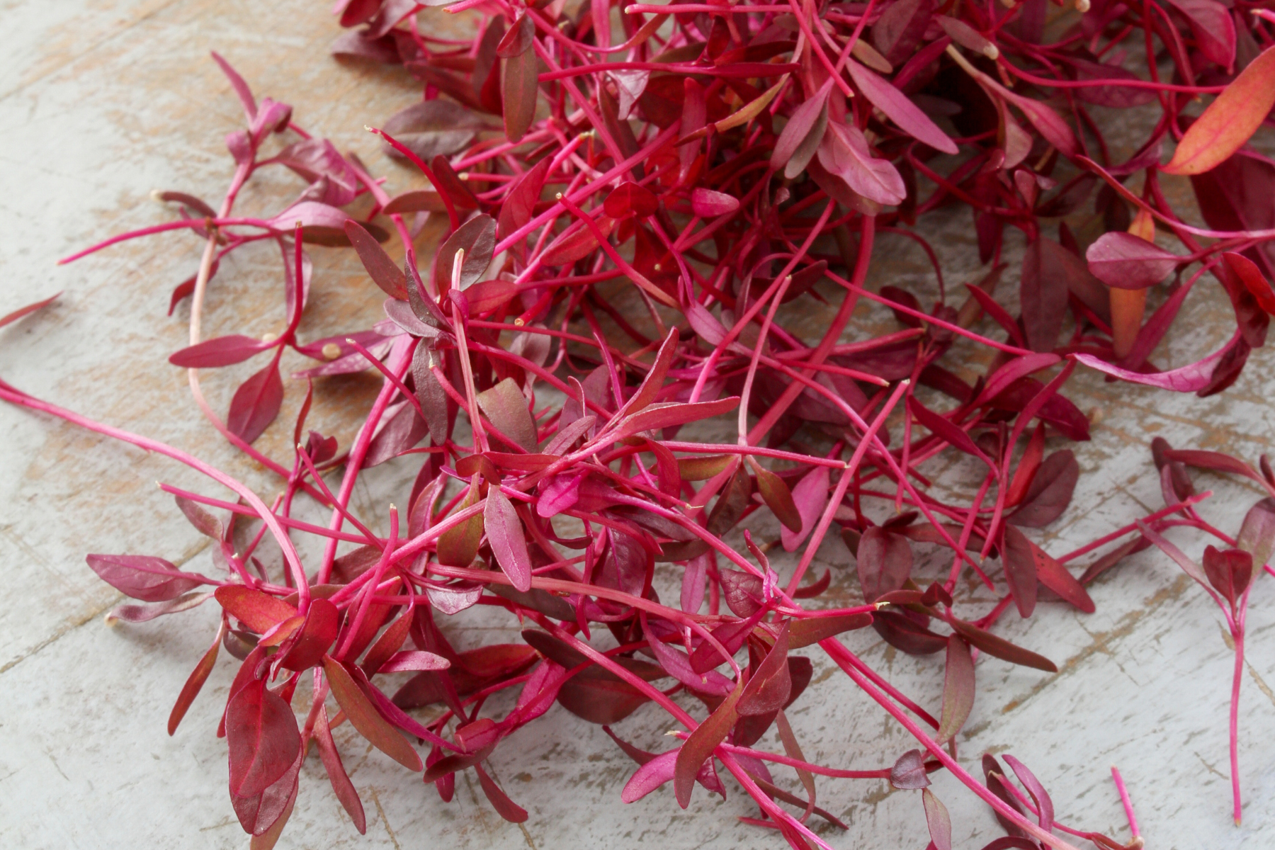 Product Description Amaranth microgreens (sometimes called red garnet) stand out for their striking red-purple stems and petite leaves—an instant show-stopper on any plate. Harvested at the optimal stage, they provide subtle flavor and bold color in one.