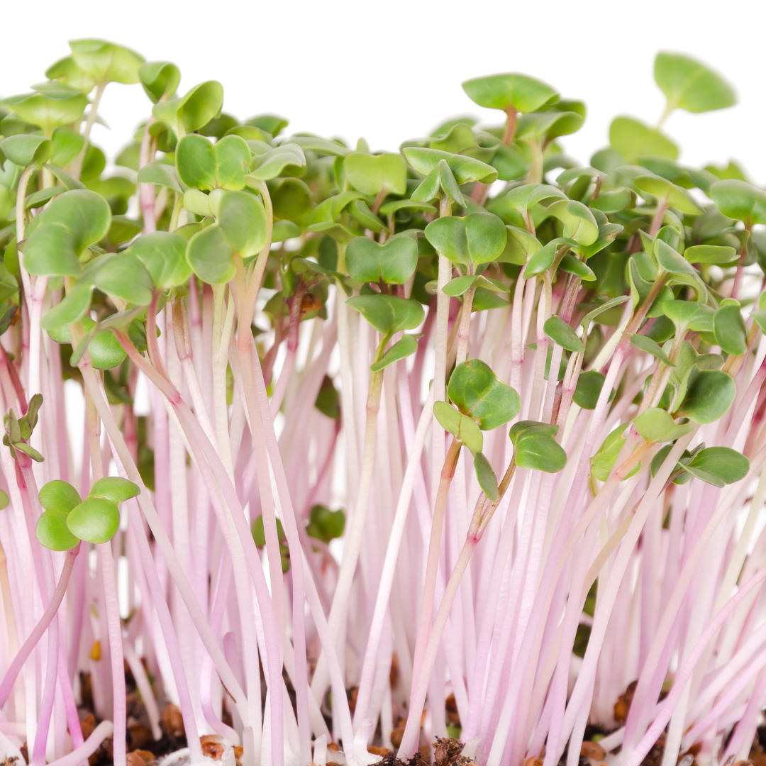 China Rose microgreens boast pastel-pink stems and bright green leaves, lending a fresh, eye-catching look. Pre-cut and ready to use, they bring crunchy texture and a signature radish zest to any recipe within seconds.